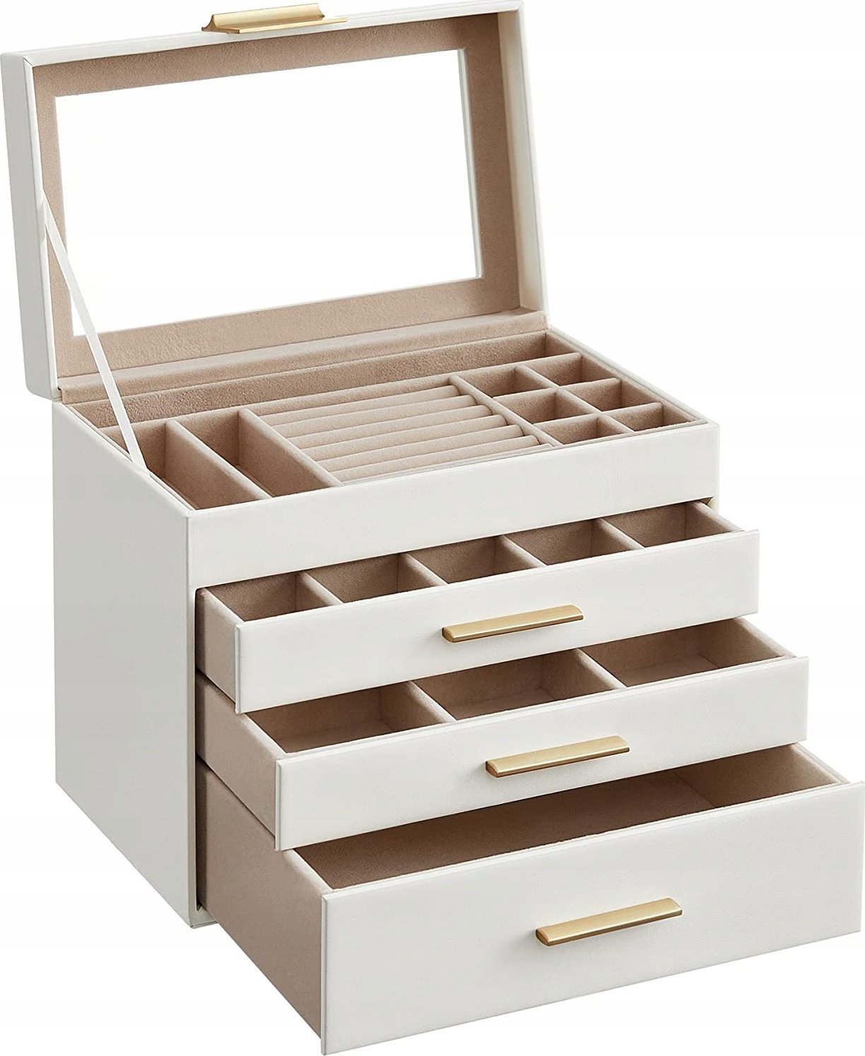 Songmics Pudeko Na Biuteri Ze Szklan Pokrywk, 4-poziomowy Organizer Na Biuteri, 3 Szuflady, Na Okulary Przeciwsoneczne, Dua Biu
