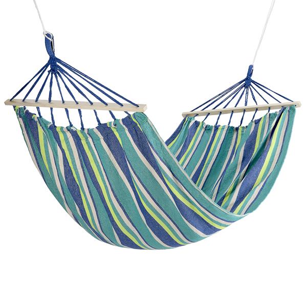 Tas ir šūpuļtīkls, kas paredzēts pakarināšanai, piemēram, starp diviem kokiem. Viegli saliekams, visi nepieciešamie trauki ir iekļauti komplektā. Pēc dažiem mirkļiem varēsim ļauties svētlaimīgai atpūtai. Koka sija 70 cm garumā, kas ievietota šūpuļtīklā kā pastiprinājums, neļauj materiālam izstiepties, tāpēc tā elastība visu laiku būs vienādi augstā līmenī. Pateicoties tam, mēs jutīsim lietošanas komfortu daudzas sezonas. Šūpuļtīkls lieliski piegulēs mūsu ķermenim, un platums līdz 100 cm garantē ērtu pozu ikvienam. Šūpuļtīkla materiāls ir poliesters un jauka, blīvi austa kokvilna. Šāda kombinācija nodrošina ļoti augstu izturību un izturību pret jebkādām deformācijām.