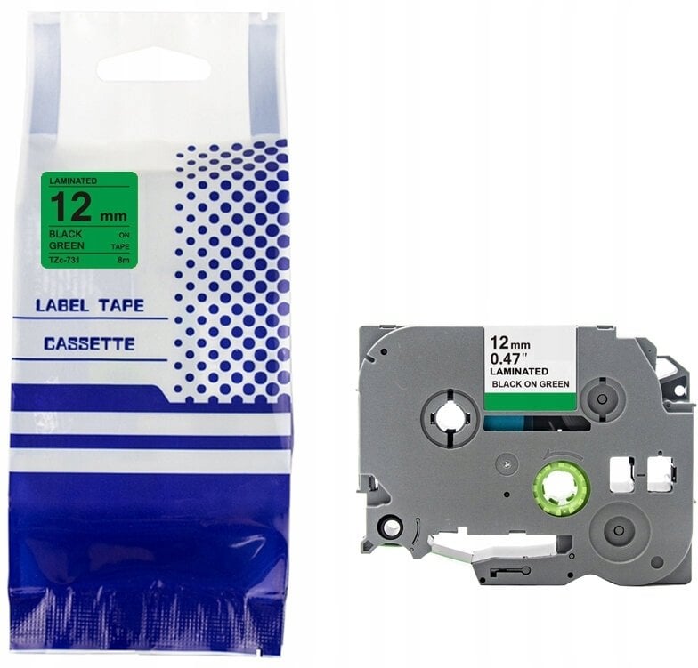 Tama BROTHER TZE-731 12mm x 8m czarny na zielonym zamiennik