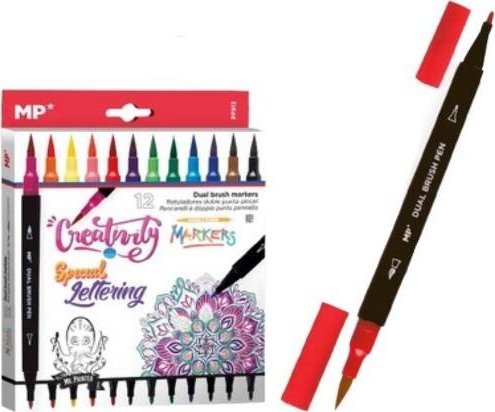 Teka Markery dwustronne pdzelkowe 12 kolorów MP
