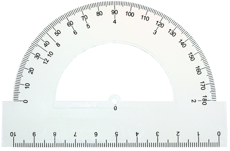 Transportieris 10 cm/180° ir ērts palīglīdzeklis leņķu mērīšanai un zīmēšanai.