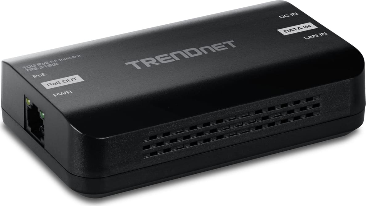 Der 10G-PoE++-Injektor von TRENDnet, Modell TPE-318GI, kombiniert Stromversorgung mit einer 10GBASE-T-Netzwerkverbindung, um ein 10G-PoE++-Netzwerksignal zu erzeugen. Die Auto-Sensing-Technologie liefert bequem die richtige Wattzahl für die Stromversorgung Ihrer PoE-, PoE+- und PoE++-Geräte. Schließen Sie den 10G-PoE++-Injektor an einen Nicht-PoE-Switch an und verlegen Sie ein Ethernet-Kabel mit Daten + Strom, um ein PoE-, PoE+- oder PoE++-Gerät in bis zu 100 m Entfernung über eine Cat6A- oder bessere Verkabelung zu vernetzen.- Wandelt einen Nicht-PoE-Port in einen PoE++ 10G-Port um