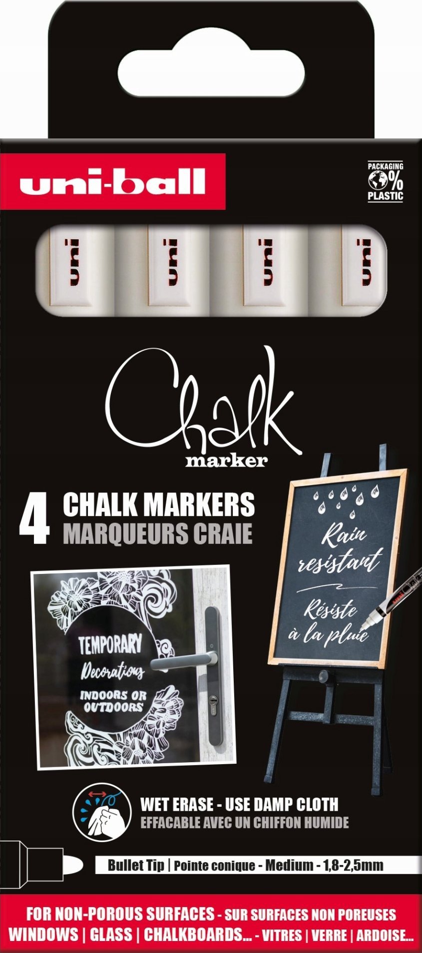 Uni Chalk marker sæt 4 stk PWE5 (4xwhite)