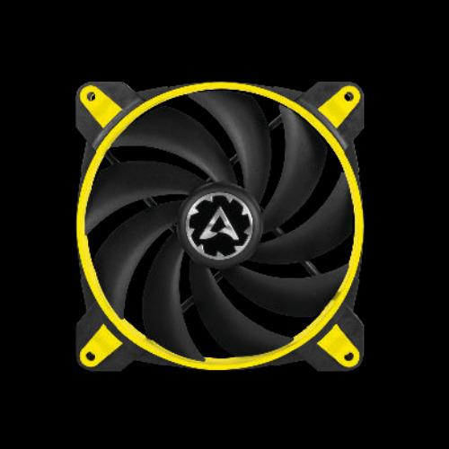 ARCTIC BioniX F120 Gaming Fan with PWM PST. Type: Fan, Fan diameter: 12 cm, Rotational speed (min): 200 RPM, Rotational speed (max): 1800 RPM, Noise level (high speed): 26 dB, Noise level: 0.5 sone, Maximum airflow: 69 cfm, Airflow: 117 m³/h, Bearing type: Fluid Dynamic Bearing (FDB). Voltage: 12 V. Width: 120 mm, Depth: 120 mm, Height: 27 mm. Product colour: Black, Yellow