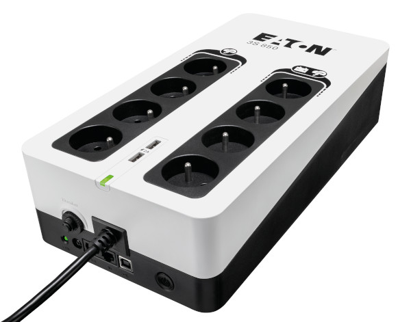 | Eaton 3S850F. UPS topology: Standby (Offline), Output power capacity: 0.85 kVA, Output power: 510 W. AC outlets quantity: 8 AC outlet(s). Battery technology: Sealed Lead Acid (VRLA). Product colour: Black, White, Cable length: 1.5 m, Safety: IEC 62040-1; IEC 62040-2 C2; IEC 62040-3; IEC 62040-4; IEC 61643-11. Width: 335 mm, Depth: 170 mm, Height: 86 mm |