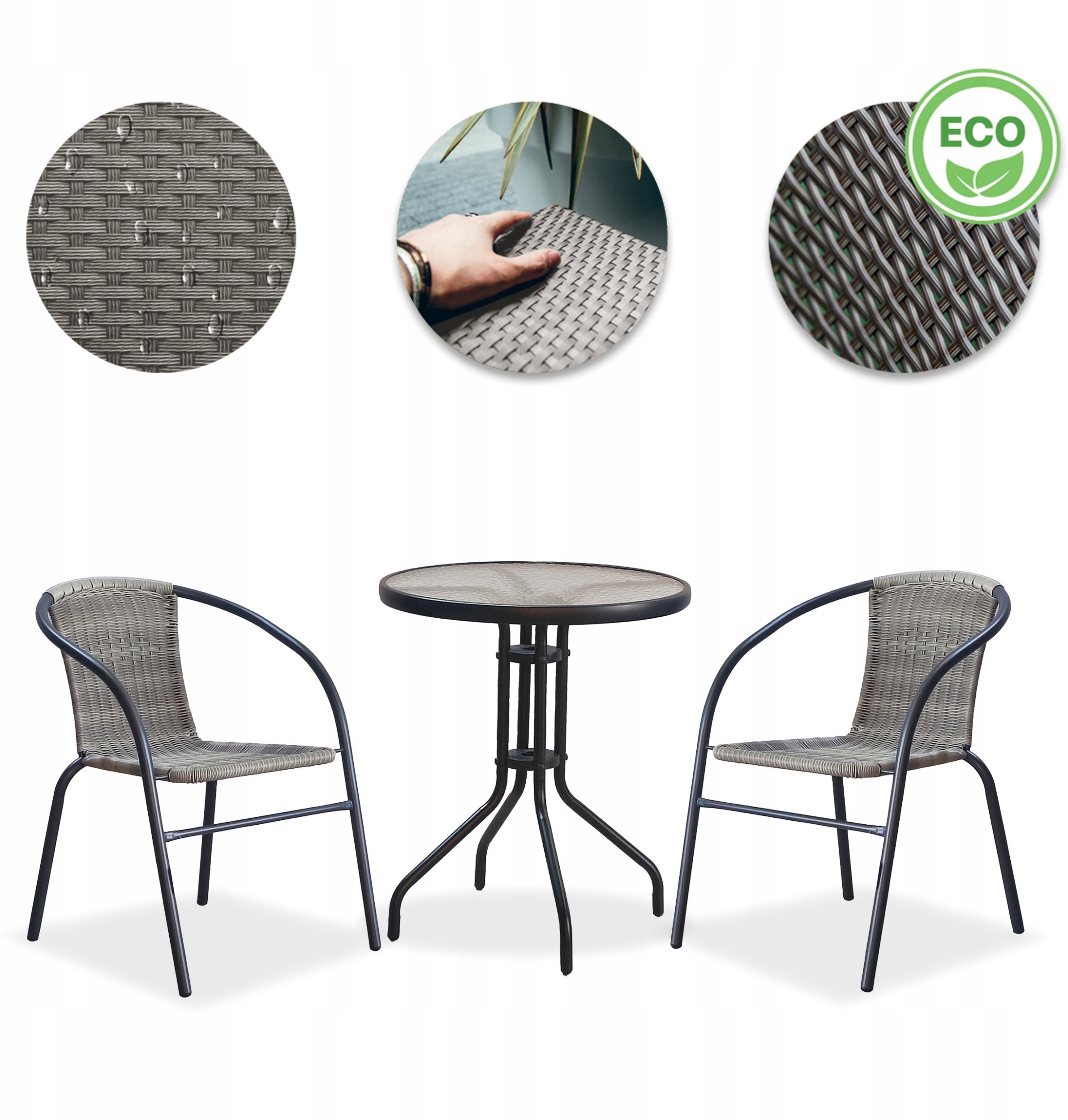ZESTAW MEBLI OGRODOWYCH STOLIK KRZESA KOMPLET MEBLI TARAS Z TECHNORATANU