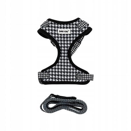Zestaw, szelki+smycz, dla psa, czarny/biay, wzór pepitka, poliester, rozmiar XS