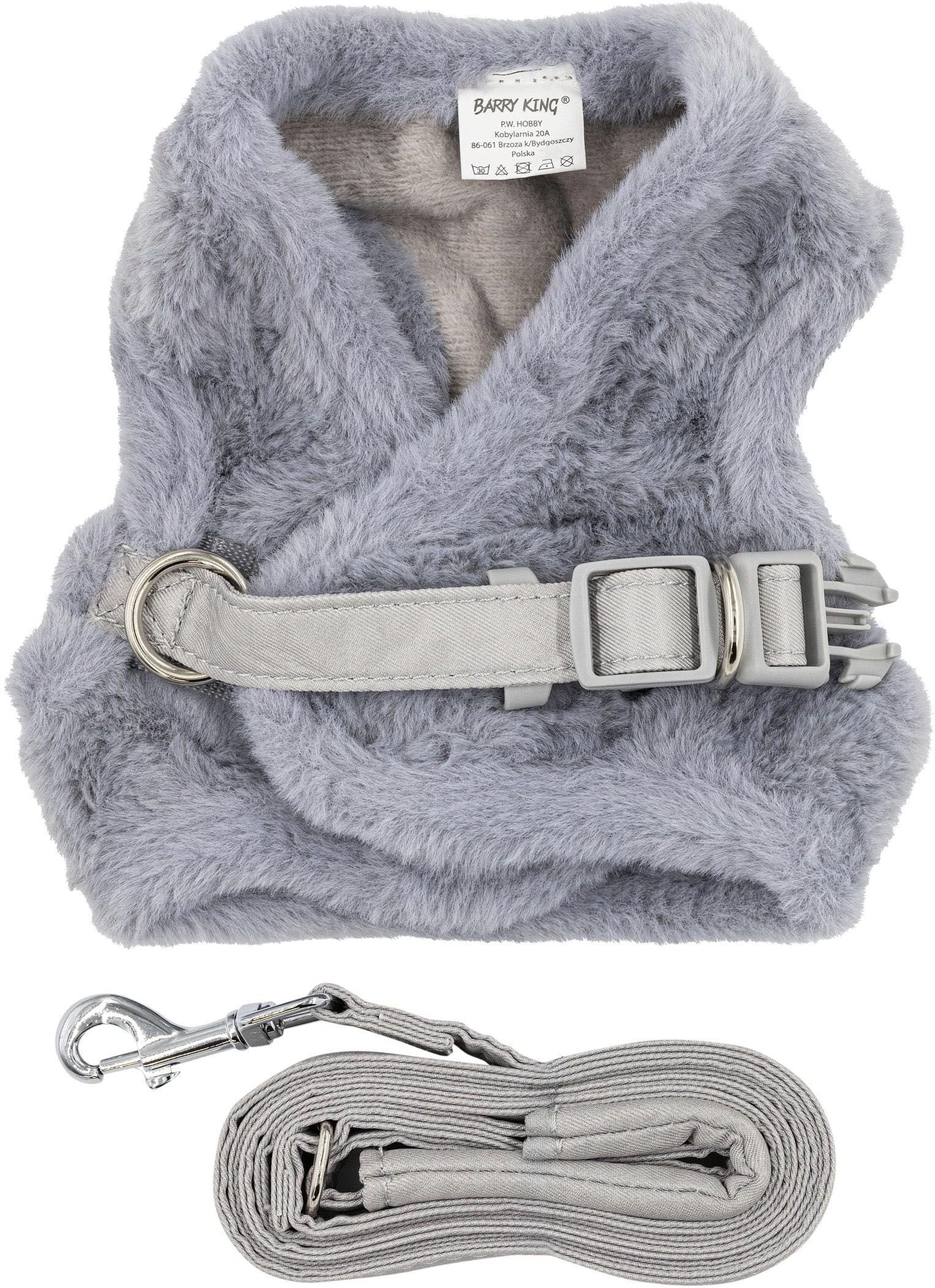 Zestaw, szelki+smycz, dla psa/kota, szary, poliester, rozmiar S, ocieplane