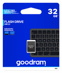 | Goodram UPI2. Capacity: 32 GB, Device interface: USB Type-A, USB version: 2.0, Read speed: 20 MB/s, Write speed: 5 MB/s. Form factor: Cap. Weight: 3 g. Product colour: Black |