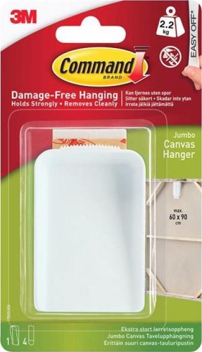3M Command ekstra stort lærredsophæng, hvid, 1 ophæng + 4 strip