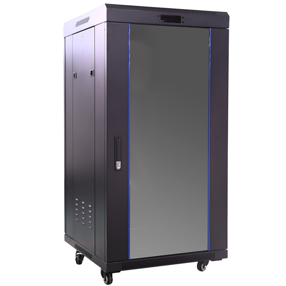42U 19'' Grīdas komutācijas servera skapis/ 800 x 1000 x 2078mm/ Stikla durvis/ Melns/ Nesalikts