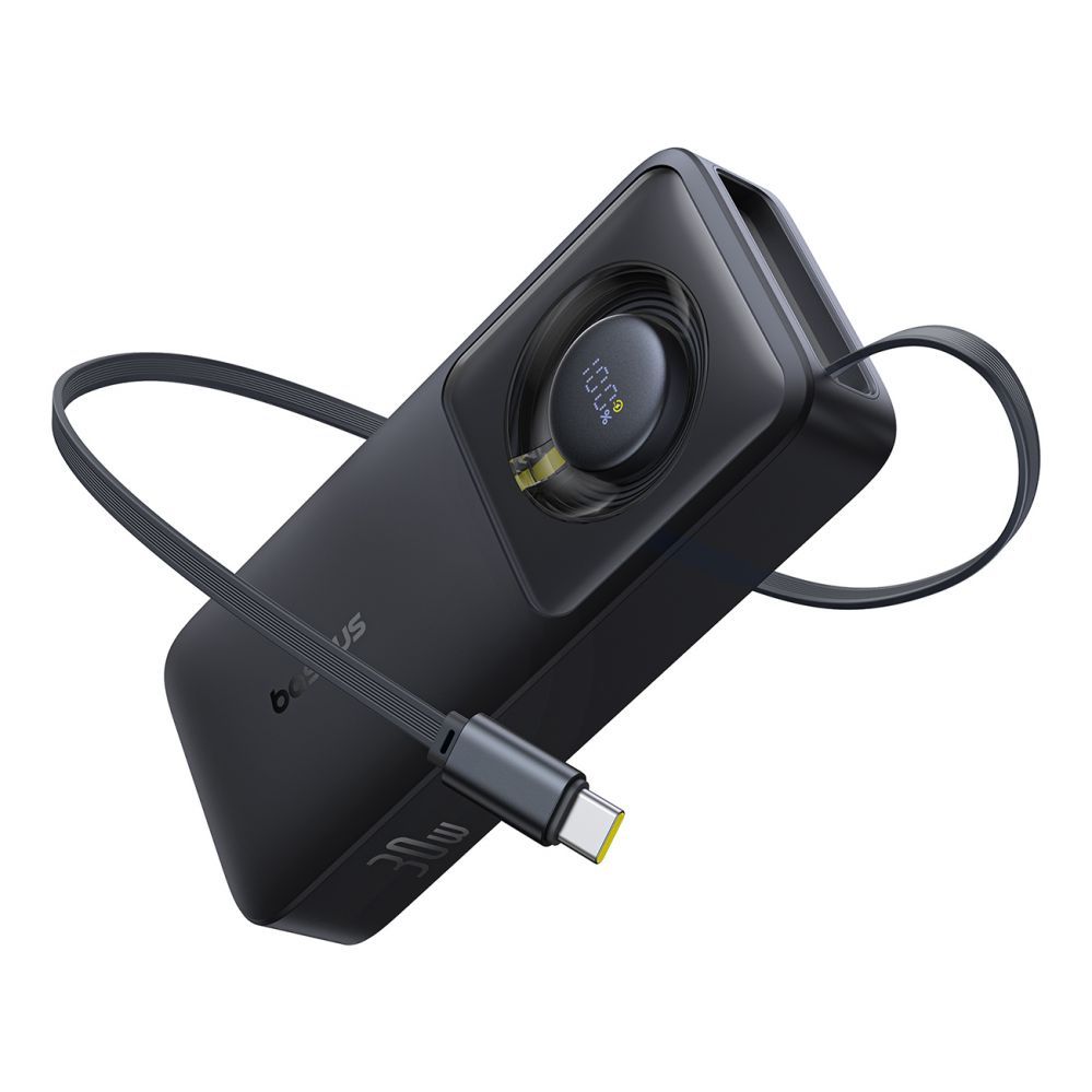 | Baseus Free2Pull power bank with a capacity of 10,000 mAh and power up to 30W with a USB-C port and a retractable USB-C cable - black The Baseus Free2Pull powerbank will easily extend the life of your phone or wireless headphones. Thanks to the built-in, retractable 70 cm USB-C cable, charging while traveling is hassle-free and free from cable tangles. The 10,000 mAh capacity will, for example, charge the iPhone 15 Pro almost twice. The fast port and input/output cable allow charging up to 30W, and advanced security protects against all threats. The ability to charge two devices at the same time makes Baseus Free2Pull the perfect choice for frequent travelers. Specification: - Brand: Baseus