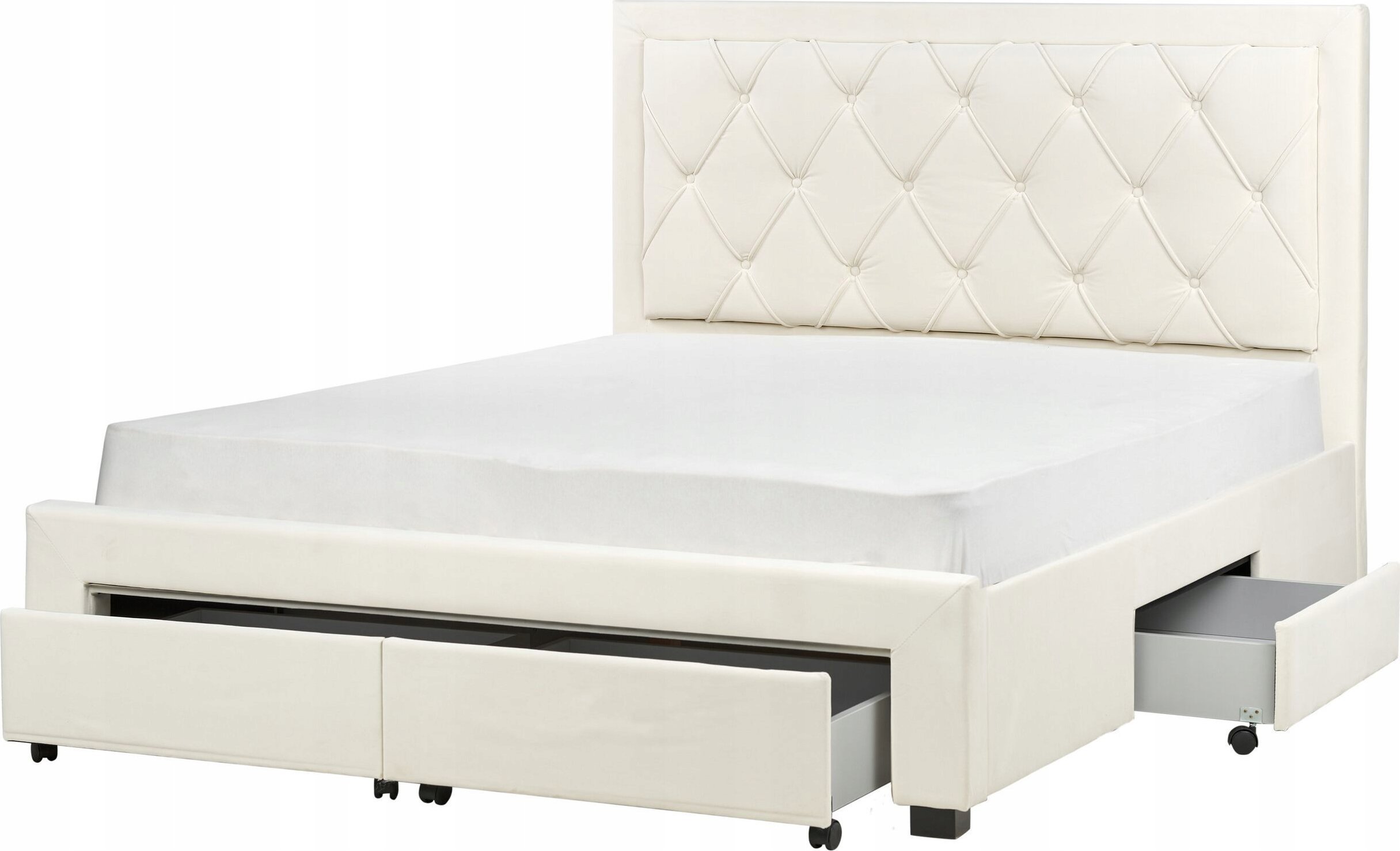 Beliani óko z szufladami welurowe 160 x 200 cm kremowe LIEVIN