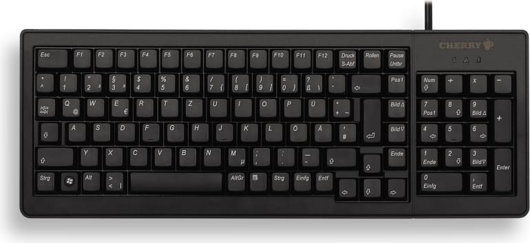 CHERRY XS Complete G84-5200. Tastatūras formas standarts: Pilns izmērs (100%). Tastatūras veids: Taisni. Savienojamības tehnoloģija: Vadu, Ierīces interfeiss: USB, Klaviatūras taustiņu slēdzis: Mehāniskie taustiņi, Tastatūras izkārtojums: QWERTY, Tastatūras taustiņu skaits: 103. Kabeļa garums: 2,5 m. Ieteicamais pielietojums: Birojs. Produkta krāsa: Melns