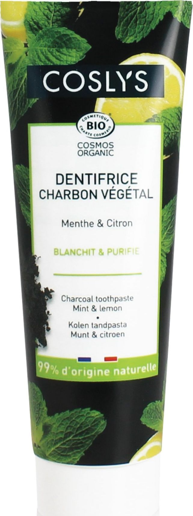 Coslys Coslys, Czarna pasta do zbów z wglem drzewnym, mit i cytryn, 100g
