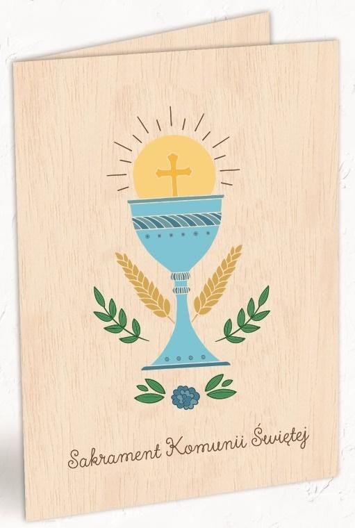 Cozywood Karnet drewniany C6 Komunia kielich + koperta