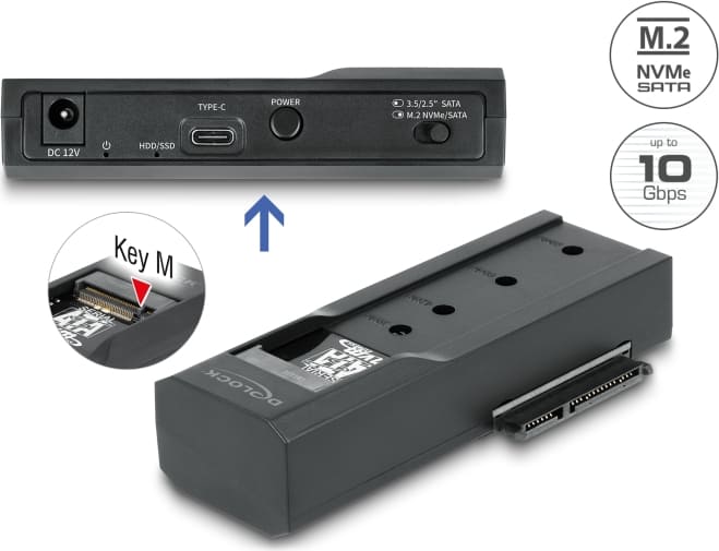 Delock USB Type-C™ Converter for 1 x M.2 SSD or 1 x SATA SSD / HDD