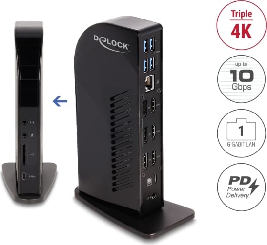 Delock USB Type-C™ Triple Display Docking Station with DisplayLink® 4K / USB Hub / LAN / SD / Audio / PD 96 W