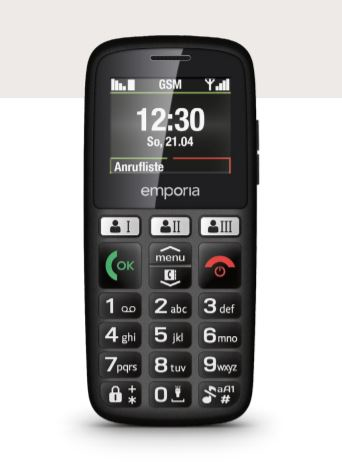 Emporia HAPPY. Form factor: Bar. SIM card capability: Single SIM. Display resolution: 128 x 160 pixels. Bluetooth. Battery technology: Lithium-Ion (Li-Ion), Battery capacity: 800 mAh, Standby time (2G): 200 h. Weight: 70 g. Product colour: Black
