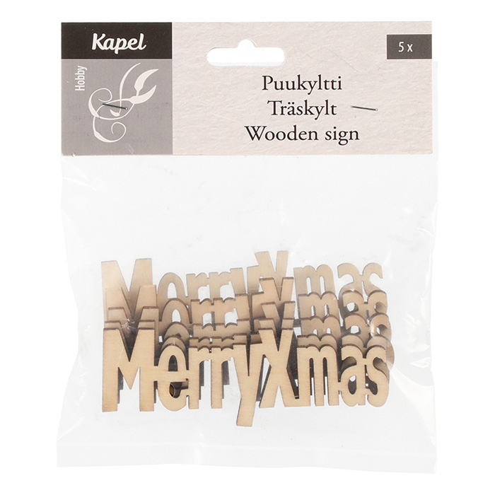 Fl.dekors Kapel koka teksts Merry Xmas 5gab.