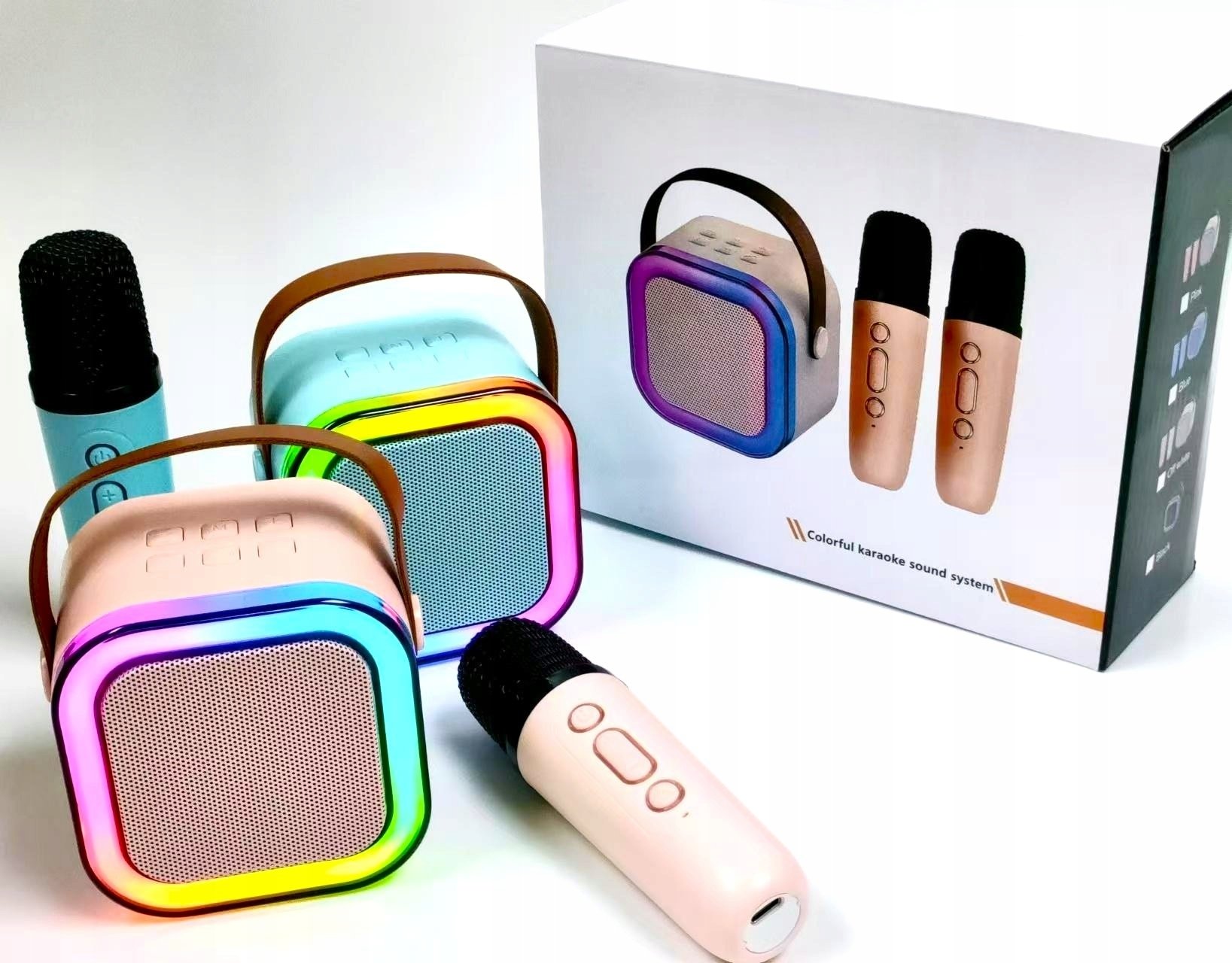 Bounn Gonik karaoke z dwoma mikrofonami niebieski