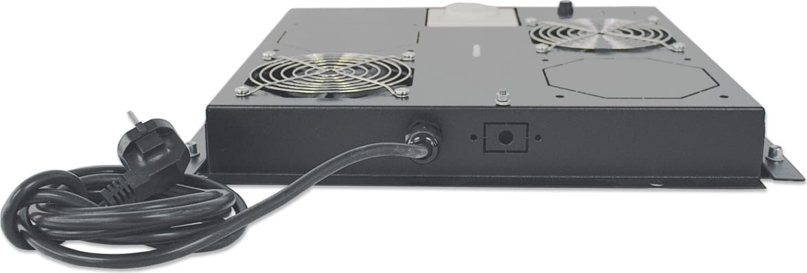 Intellinet 712859. Tips: Ventilatora paliktnis, Iebūvēts ventilators, Ventilatoru skaits: 2 ventilators/ ventilatori, Gaisa plūsma: 195,4 m³/h. Jaudas avots: AC. Apvalka materiāls: Tērauds, Produkta krāsa: Melns. Skaits iepakojumā: 1 pcs. Svars: 2,9 kg