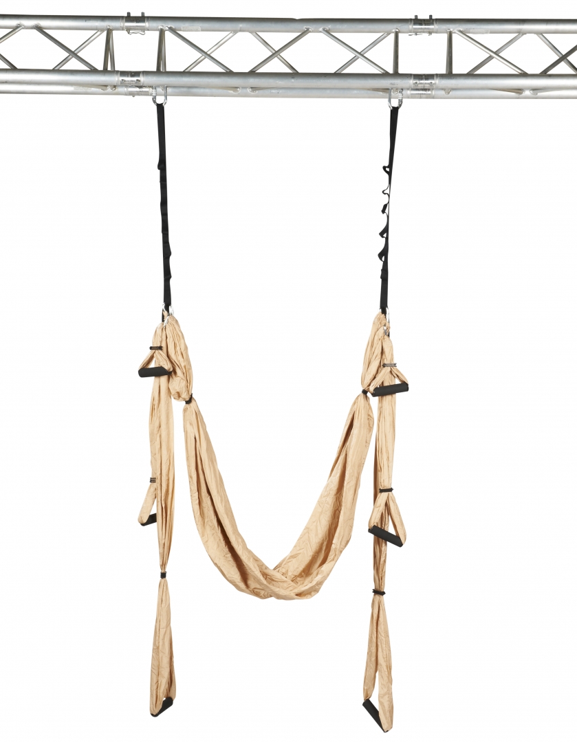 | Gaisa jogas josla tiek izmantota dažādiem jogas vingrinājumiem. Treniņš ir ārkārtīgi efektīvs, jo ķermenis vienlaikus atpūšas un trenējas. Pakāršanās, šūpošanās – visa ķermeņa pieredze šādu aktivitāšu laikā ļauj sajust vēl efektīvāku jogu.