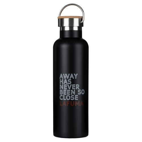 Pudelei ir skrūvējams aizdares vāciņš ar elegantu koka augšpusi, kurā iegrebta Lafuma lapiņa, un praktisku cilpu transportēšanai un iekāršanai. |