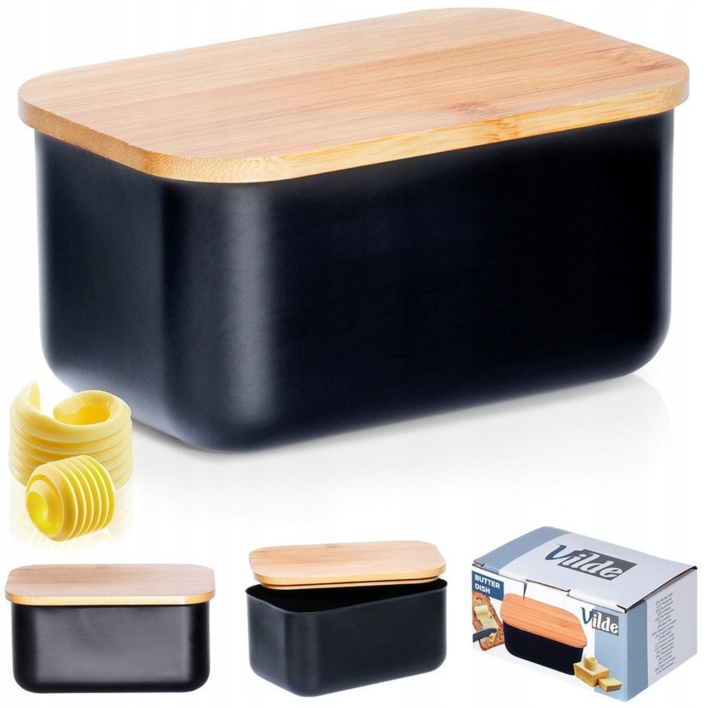 Maselniczka Pojemnik na Maso Stalowa Czarna Bambusowa VILDE 15x10x7,5 cm