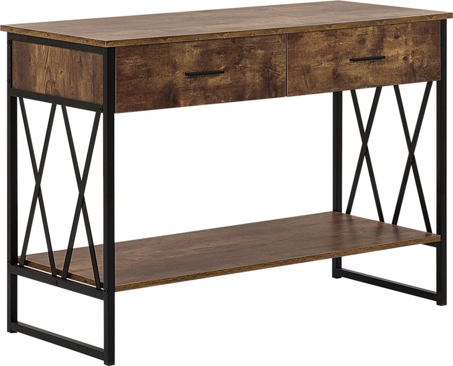 Shumee Konsola 2 szuflady ciemne drewno z czarnym AYDEN