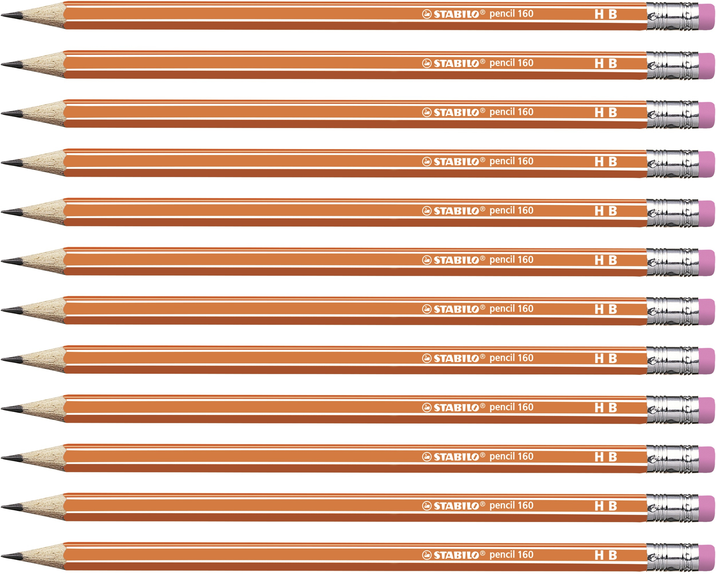 STABILO pencil 160. Hardness: HB, Product colour: Orange, Shape: Hexagonal. Lead diameter: 2.2 mm, Package width: 47 mm, Package height: 16 mm. Quantity per pack: 12 pc(s)