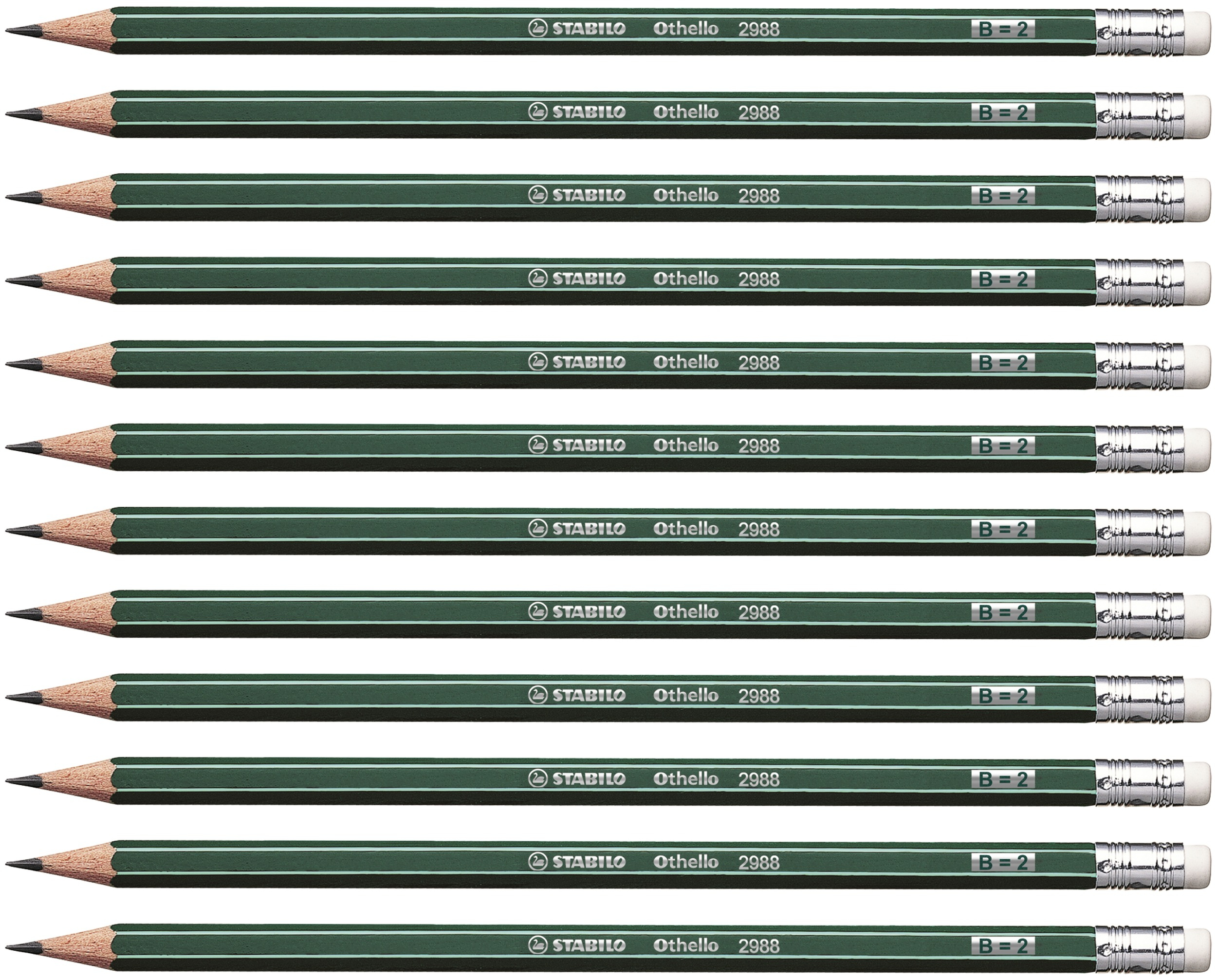 STABILO Othello. Hardness: B, Product colour: Green, Shape: Hexagonal. Lead diameter: 3 mm, Package width: 45 mm, Package height: 8 mm. Quantity per pack: 12 pc(s)