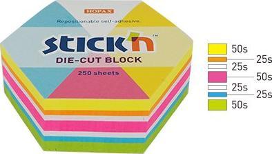 Stickn Notes szeciokt, 61x70mm, mix 5 kol. neon+biay, 250kart. Stick"n 21827