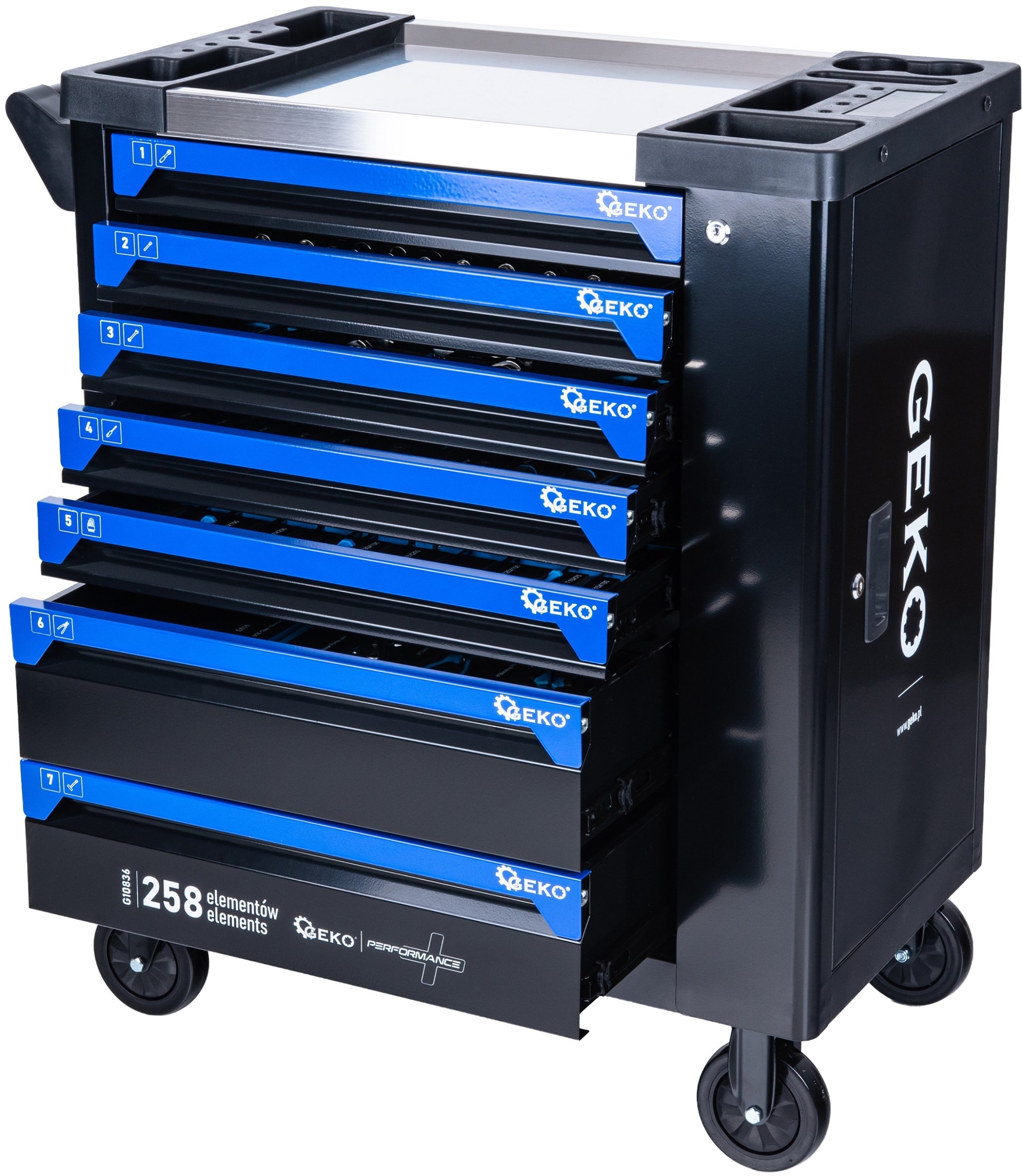 Szafa ogrodowa Geko Szafka warsztatowa z wyposaeniem - 7 szuflad, 258 el.