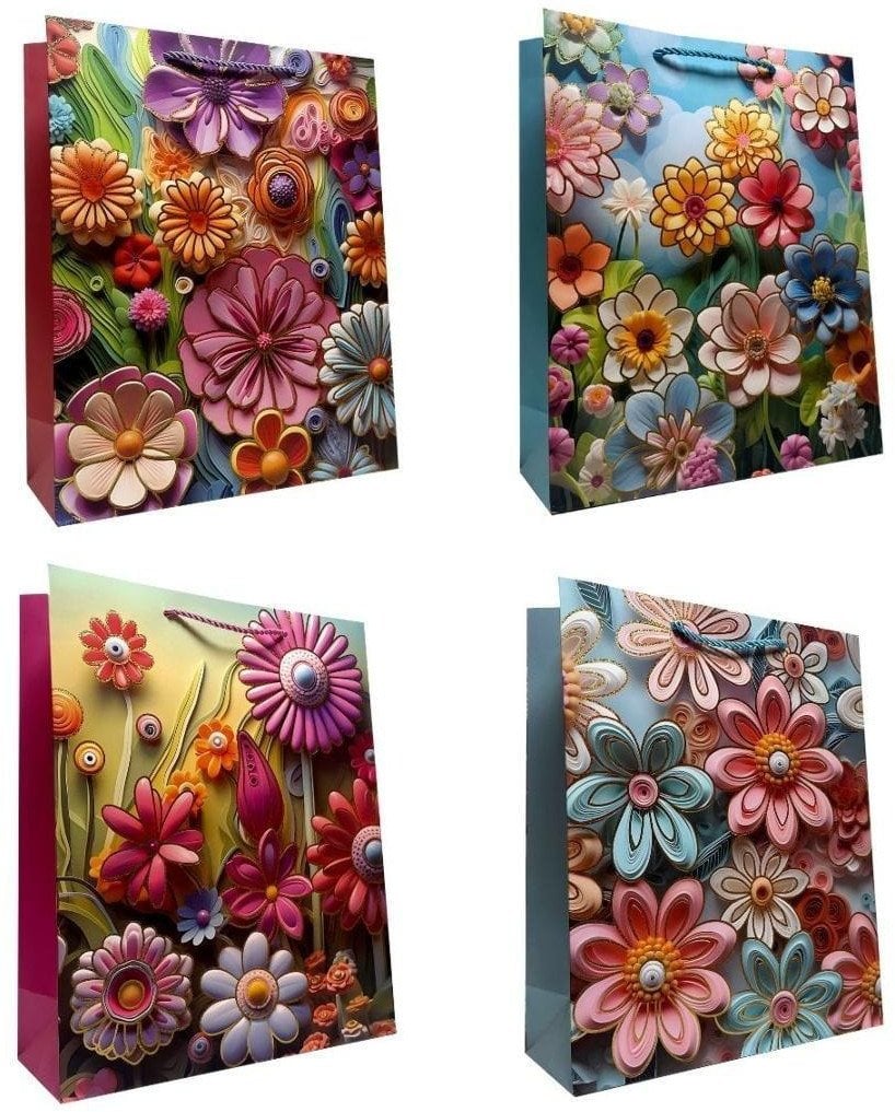 Torebka prezentowa uniwersalna S Kwiaty metal mix