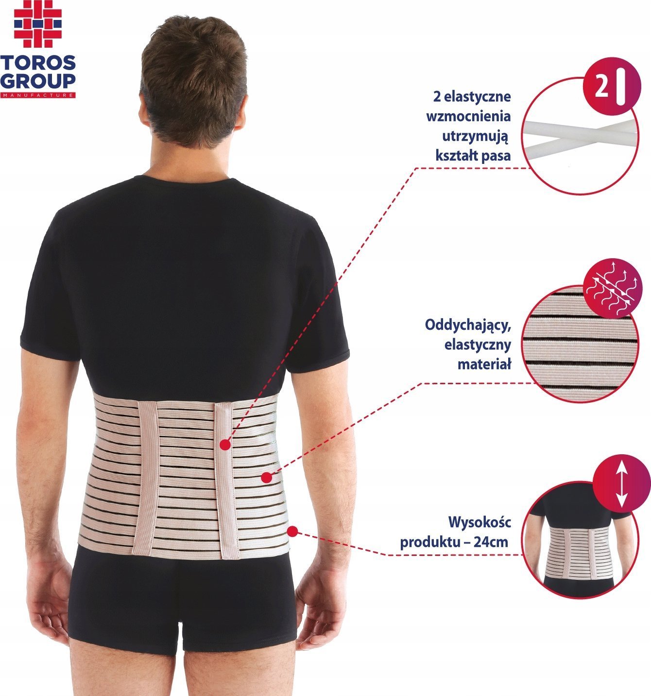 TOROS-GROUP Pas pooperacyjny z szynami usztywniajcymi , porowaty - Wysokoâ 24 cm rozmiar 7 - 150P(b)-5