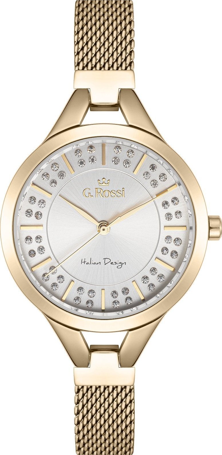 • Dial: silver with zircons