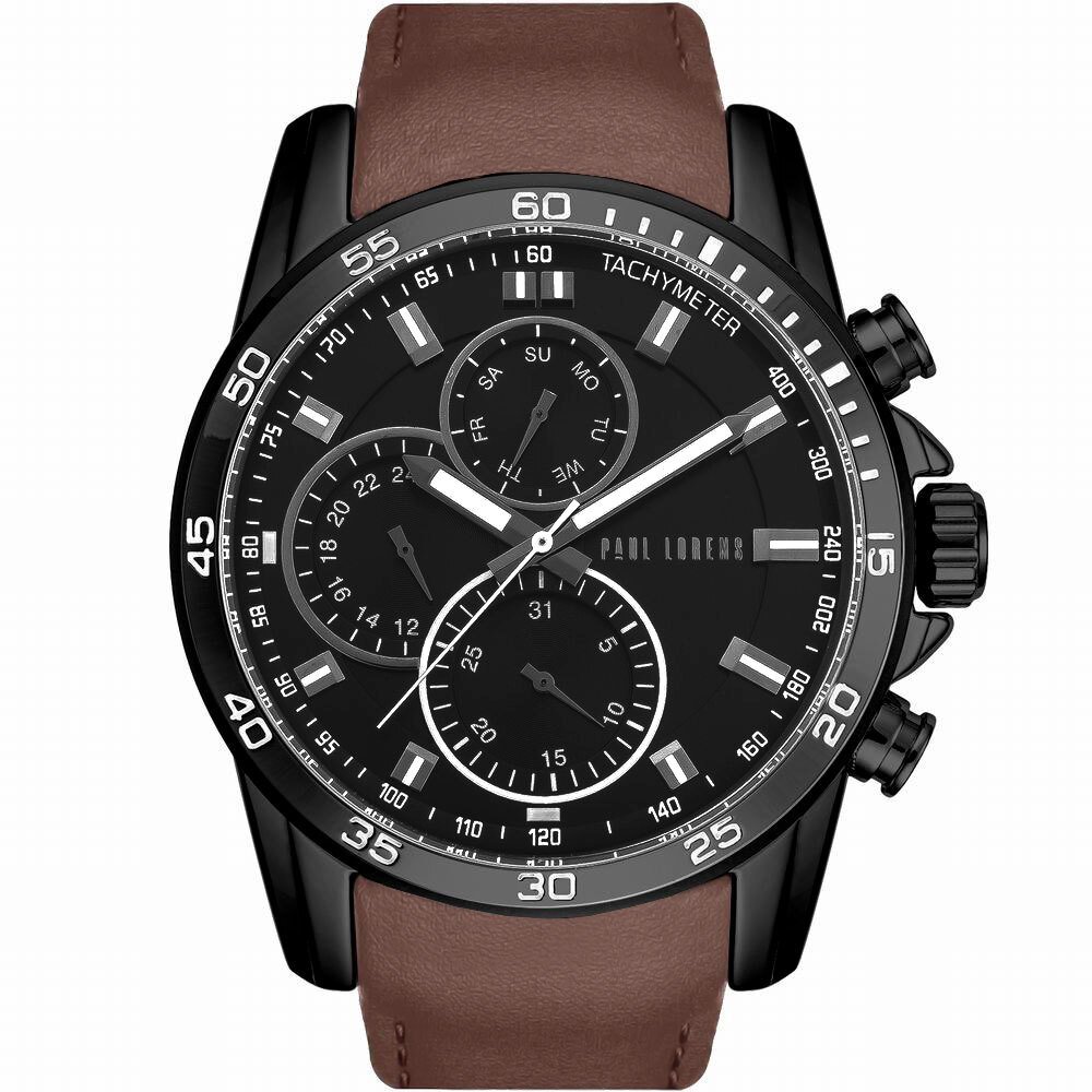 Zegarek mski Paul Lorens MATIAS czarny z brzowym paskiem