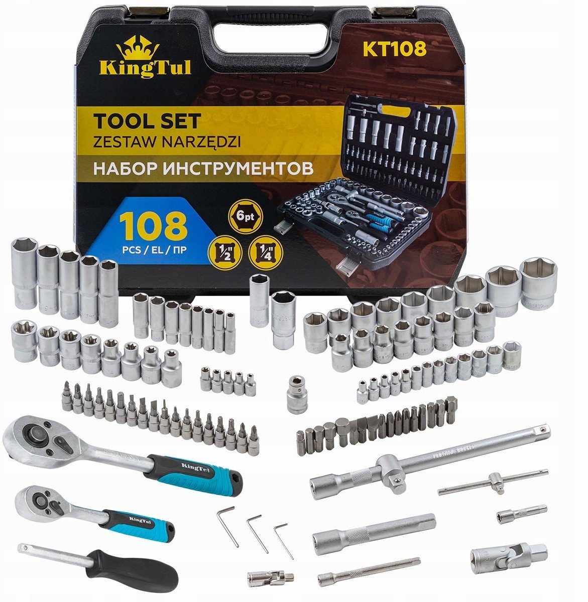 Zestaw narzdzi 108el. 1/4", 1/2" (6-ktnych) (4-32mm)