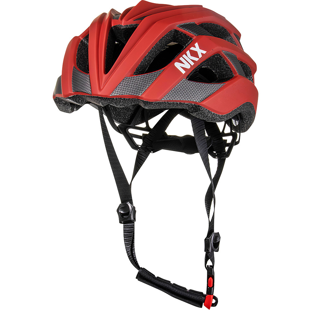 NKX Racer Pro velosipēda ķivere ir paredzēta visiem visu vecumu cilvēkiem. Ja esat profesionāls velosipēdists vai vienkārši nepieciešama kvalitatīva ķivere kā pilsētas riteņbraucējam, šī veloķivere jums būs lieliski piemērota. Racer Pro ir pilnībā regulējams ar sprādzi aizmugurē un skavu apakšā, padarot to ļoti viegli pielāgojamu precīzam galvas izmēram. Turklāt NKX Racer Pro ķivere izmanto elastības tehnoloģiju, ko sauc par Axiom Elite Fit Pad, kas pielāgojas jūsu galvas formai un kontūrai. Kā CE apstiprināta velosipēda ķivere, kas izgatavota no augstākās klases materiāliem, jums tiek garantēta izturīga un neticami ērta ķivere. Iekšējais un ārējais apvalks aizsargā jūsu galvu sadursmes gadījumā, un velūra polsterējums nodrošina augstu komfortu. Ķiveres dizains nodrošina aerodinamiku, kas ļauj uzturēt lielu ātrumu visos jūsu braucienos. Visu laiku ķiveres ventilācija uztur jūsu galvu vēsu un nodrošina lielisku gaisa caurlaidību. Neatkarīgi no tā, vai esat nākamais, kurš kļūs par lielisku profesionālu velosipēdistu Tour de France, vai vienkārši mīlat braukt ar velosipēdu, NKX Racer Pro velosipēda ķivere ir lieliska izvēle jums. Ārējā apvalka tips PC Shell Dzimums Sievietes, Vīrieši, Bērni Polsterējuma materiāls 360 Velūrs Mīksts Regulējamība Jā Iekšējā apvalka tips EPS SertifikātiEN 1078 Ventilācija Jā   Izmērs S/M L/XL CM 55 - 58 cm 59 - 61 cm