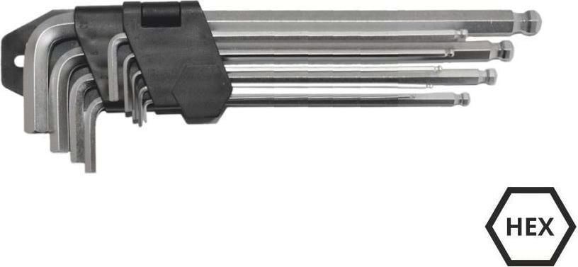 AWTools Zestaw kluczy imbusowych hex typ L 1,5-10mm z kulk 9szt. (AW40529)