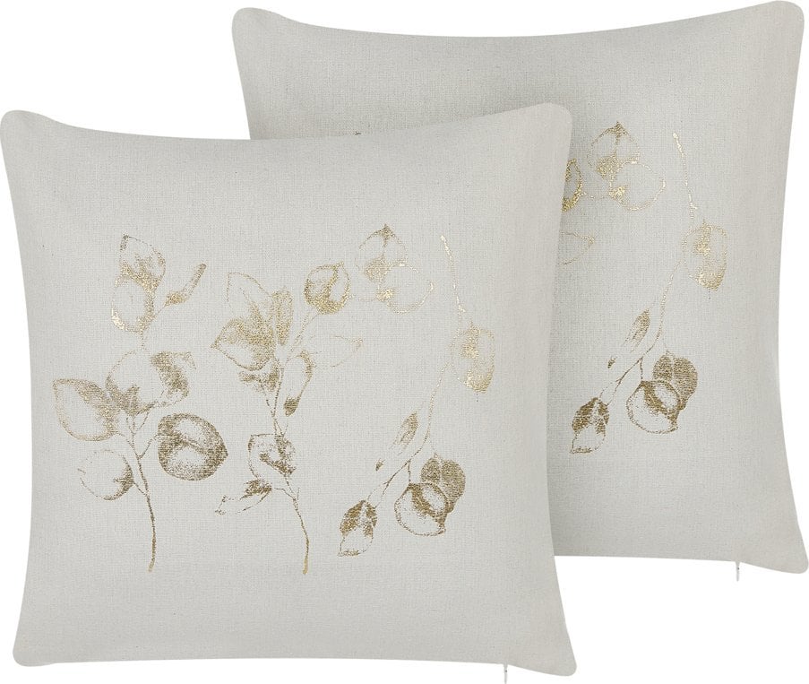 Beliani 2 poduszki dekoracyjne z motywem rolinnym 45 x 45 cm zamana biel GOMPHRENA!