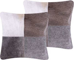 Beliani 2 skórzane poduszki dekoracyjne w aty 45 x 45 cm szare NELLAD!