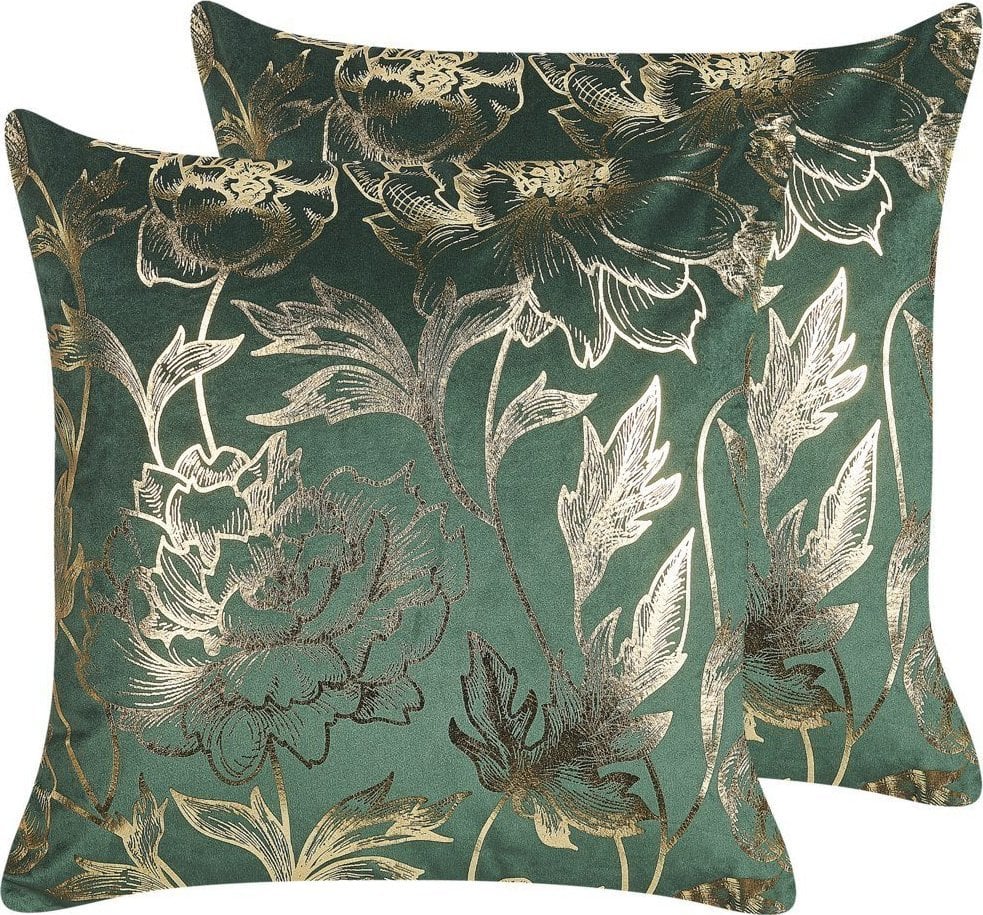 Beliani 2 Welurowe Poduszki Dekoracyjne W Kwiaty 45 X 45 Cm Zielone Daffodil!