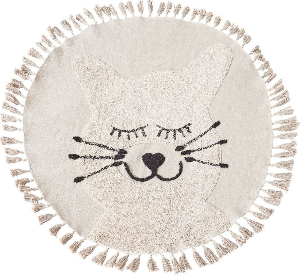 Beliani Dywan dziecicy okrgy baweniany motyw kota ø 120 cm beowy ETSERI
