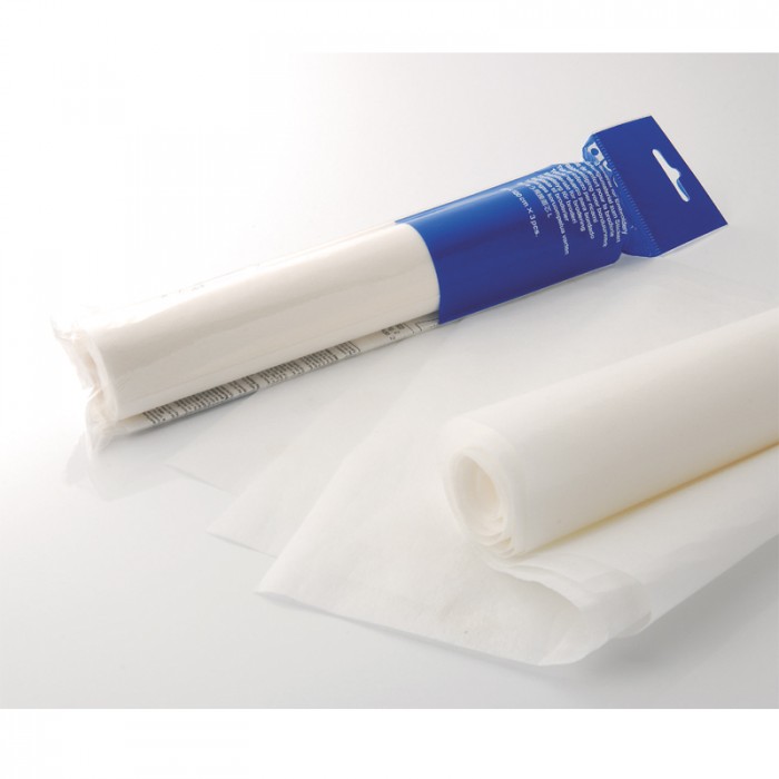 Pirms šūšanas piegludināt pie auduma, šūšanas laikā nodrošina auduma stingrumu. Pēc šūšanas lieko flizelīnu apkārt izšūvumam nogriezt, vai uzmanīgi noplēst.
