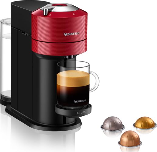 | Krups Vertuo Next XN9105. Product type: Capsule coffee machine, Coffee maker type: Semi-auto, Water tank capacity: 1.1 L, Coffee input type: Coffee capsule, Reservoir for brewed coffee: Cup, Capacity in cups: 1 cups. Power: 1500 W. Product colour: Red |