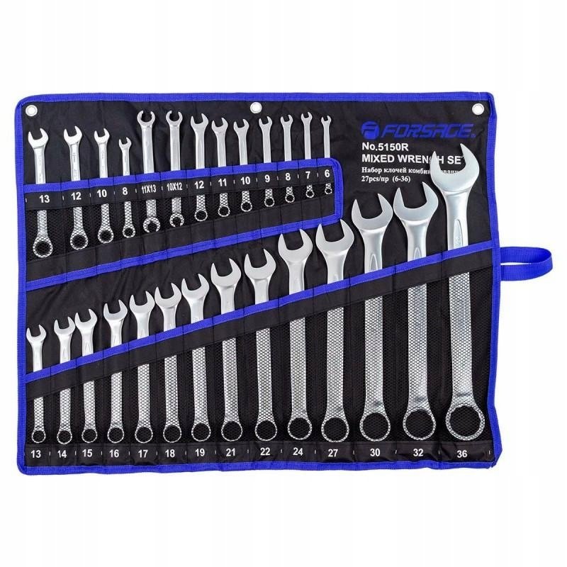 Forsage Zestaw kluczy paskich i oczkowych 27el. (6-36mm) w pótnie (4 z grzechotk)
