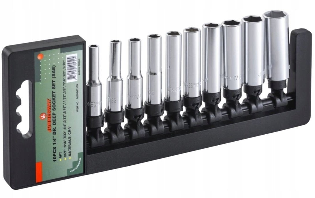 JONNESWAY KOMPLET NASADEK CALOWYCH DUGICH 10 elem.(1/4" 6-KAT) S05HD2210S