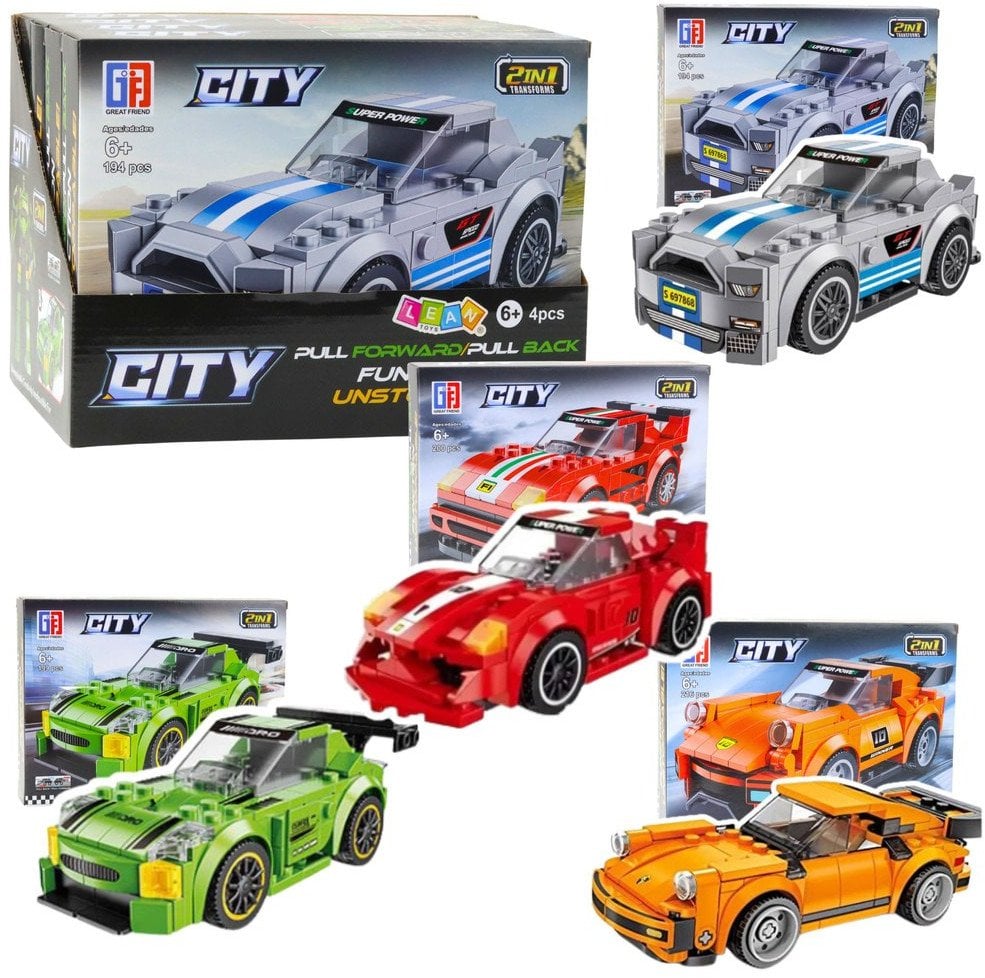 Klocki Konstrukcyjne 2w1 Auto Robot Napd Pull-Back 194-216 el. Mix